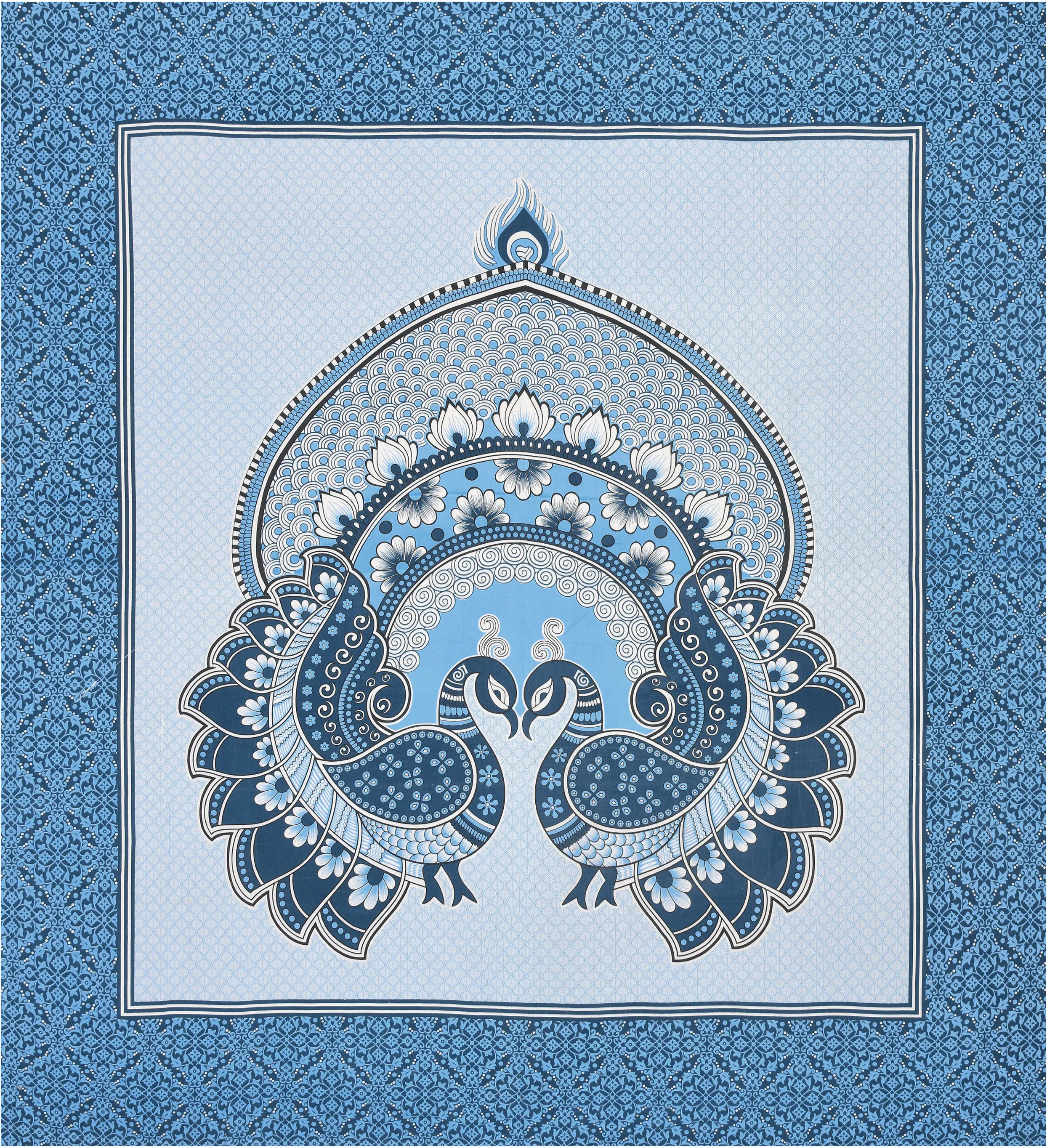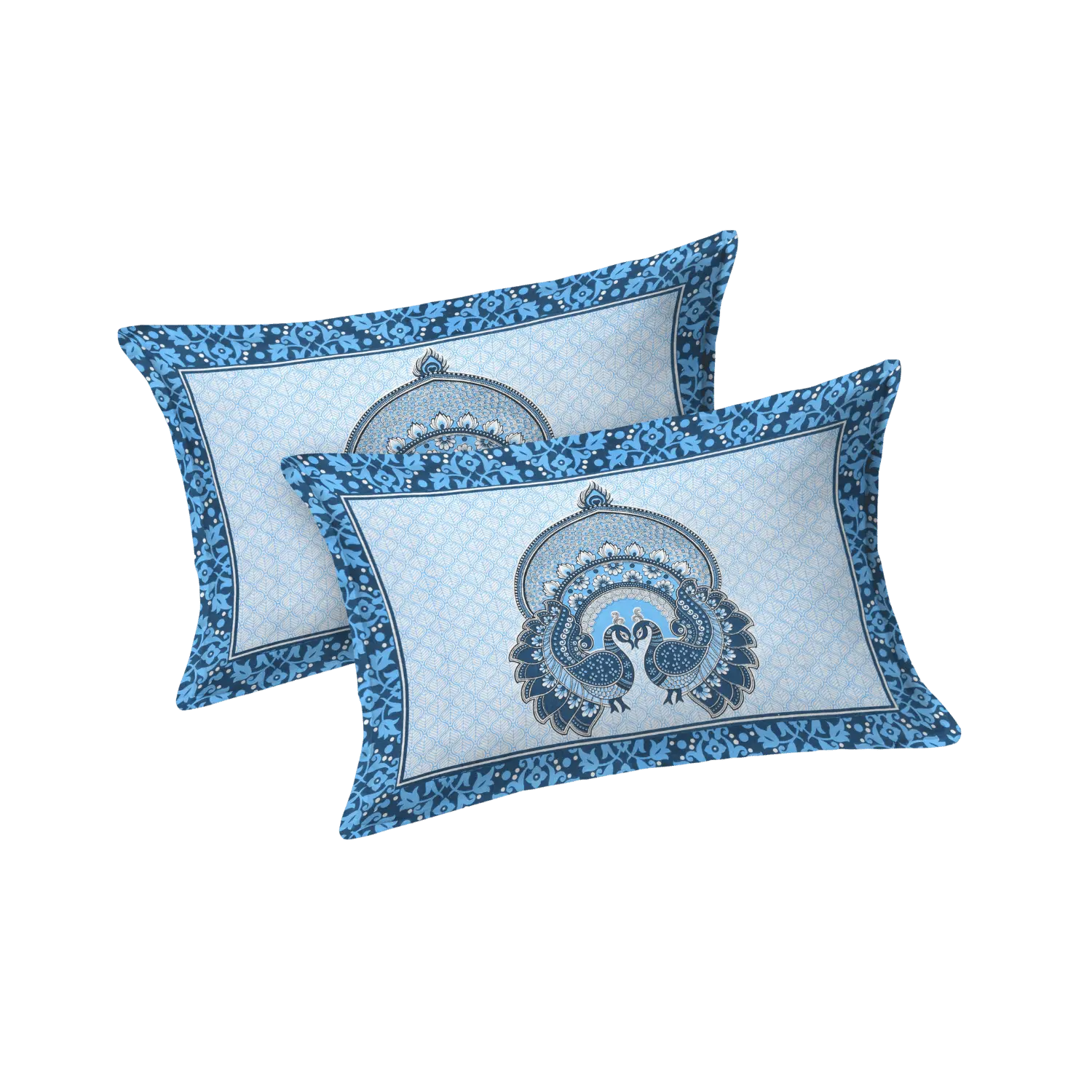 Double Bed Size Pure Cotton Jaipuri Bedsheet (Blue)