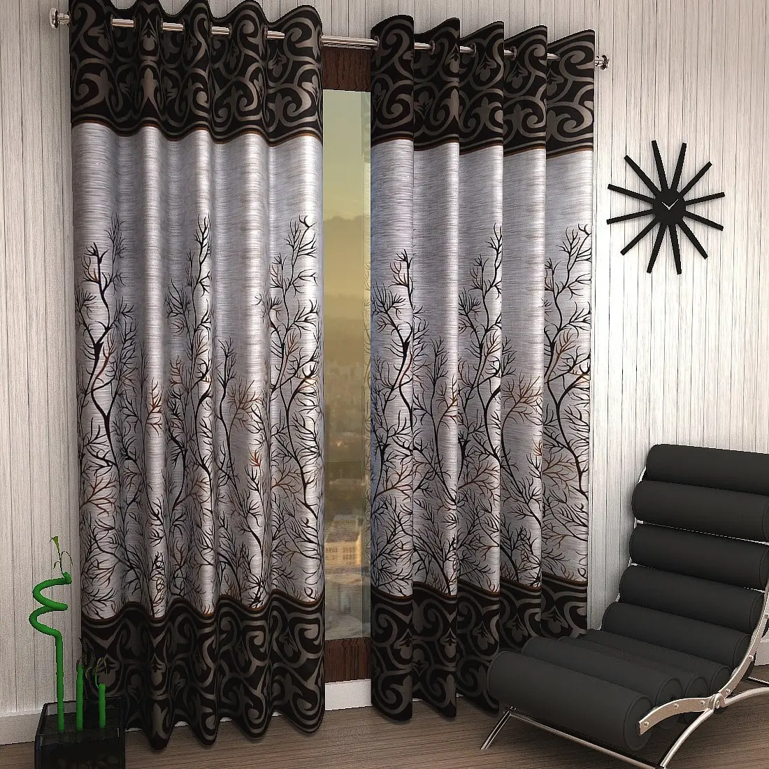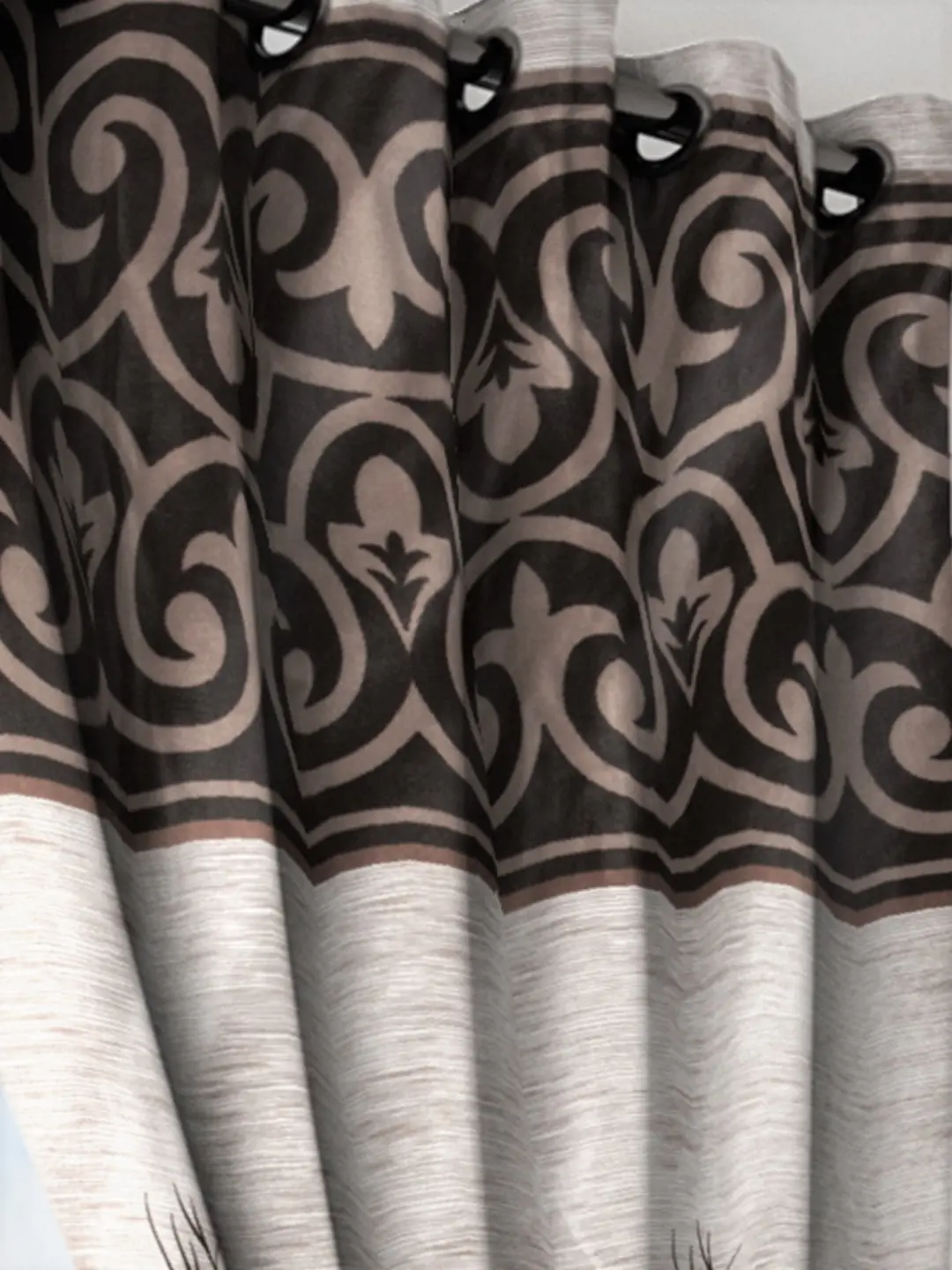 Polyester Semi Transparent Door Curtain (Pack of 2, Brown)